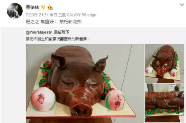 蔡依林也很能接住罗志祥的梗,当天就发了一个烤乳猪的蛋糕。