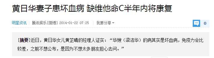 不久之后,有媒体称梁洁华可能患上血癌。黄芷晴的经纪人表示只是坏血病,并不是血癌。