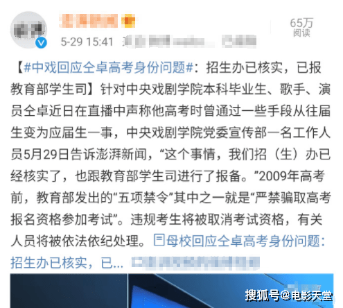 而这次,仝卓比翟天临还要严重。仝卓自爆“高考舞弊”事件已经惊动了他毕业的中央戏剧学院以及当地教育局,可以说将是一轮彻查,仝卓很可能因为直播中的一次“口嗨”,彻底葬送他的职业生涯。