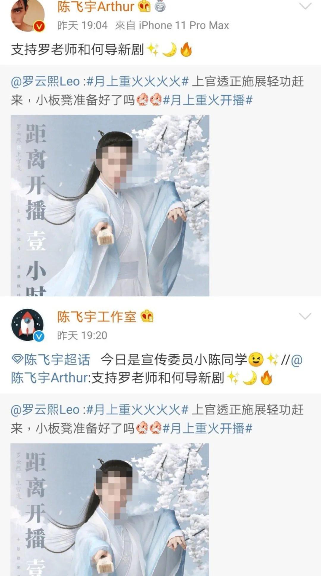 最近罗云熙的新剧上线了,结果陈飞宇为其亲自宣传,还转发宣传罗云熙新剧。