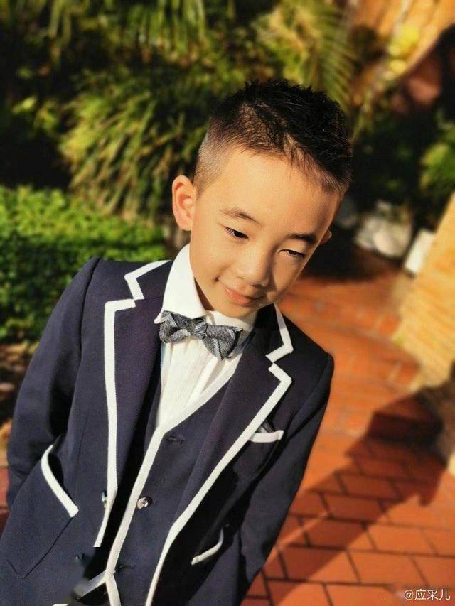 Jasper更从背后环抱应采儿的孕肚,画面温馨。除了与儿子Jasper的合照外,应采儿也分享了儿子的单人照。