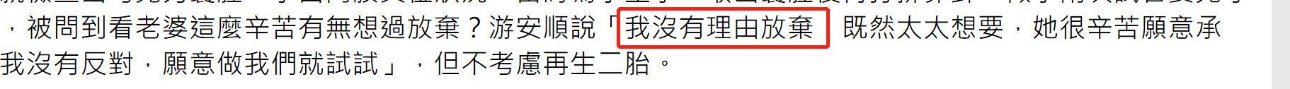 被问到老婆这么辛苦有无手机电影网想过放弃,游安顺讲太太很想要孩子,她愿意承担辛苦,自己没理由反对,但不考虑生二胎。