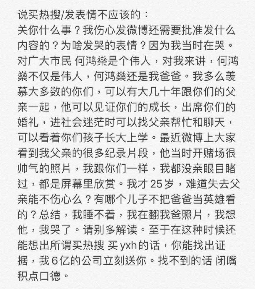 虽然是解释上热搜修改认证的事,但这些都没有什么意义,最重要的还是何猷君爆料自己发愤图强,努力创业的经历,他的确不愧为赌王的儿子,希望能够继承父辈的辉煌,创造更多的财富,提供给更多人谋生的机会。