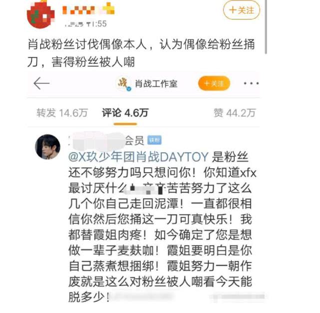 这名粉丝直接在“肖战工作室”的官博下留言,谴责肖战无视粉丝的努力,认为他的这种做法无异于捅了粉丝一刀,无法原谅。