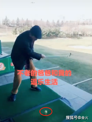 随后杨议还向老爸炫耀了一番高超的技术,成功把球打了出去。