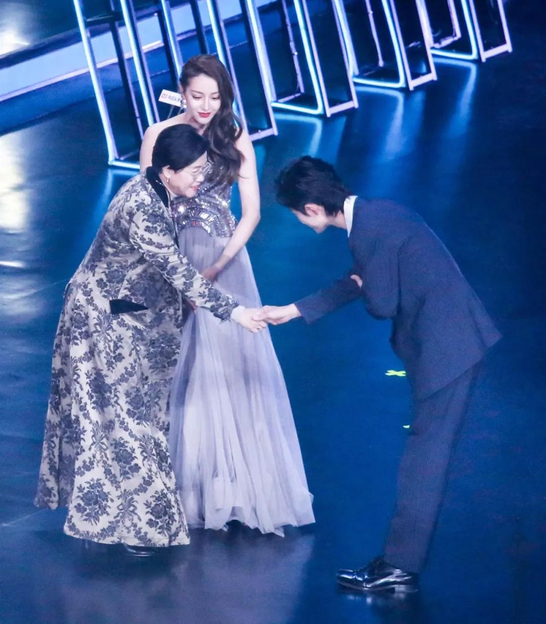他入场的时候,杜江、霍思燕、肖央正好在他位置边上,于是肖战便与大家一一打招呼呼,鞠躬握手之后才坐下。