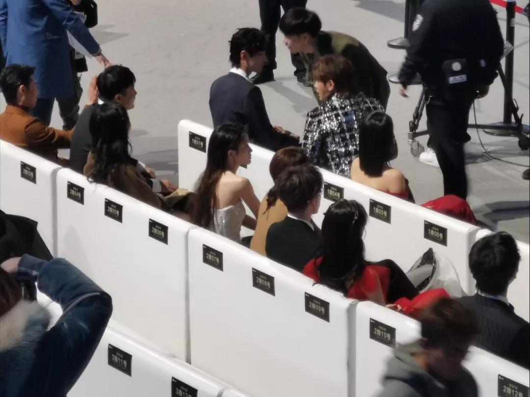 由于这次官方给我安排的位置在前排,和肖战、李现坐的位置就隔了五六排,所以看得非常清楚,盛典期间我清晰地看到了前排小板凳上的明星朋友热聊。