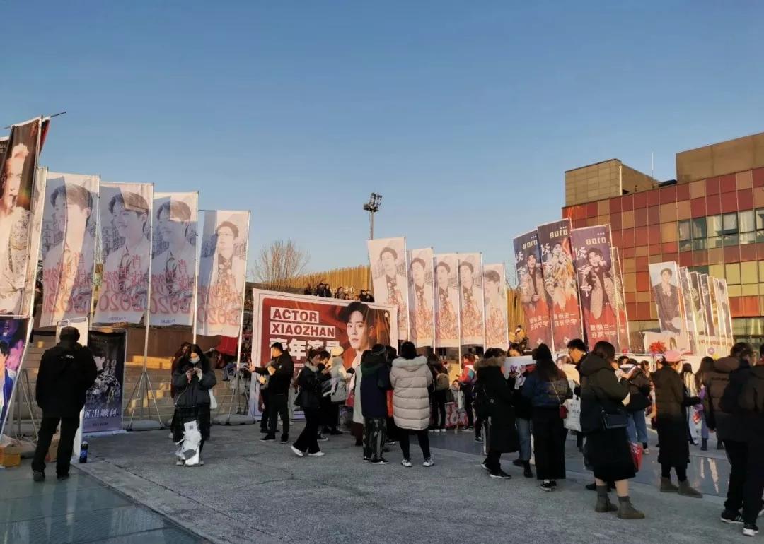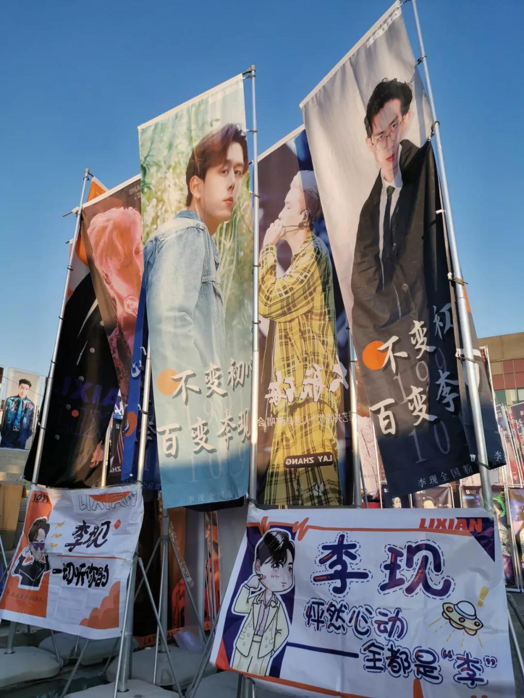 每次盛典,各家粉丝后援会必定会早早到场外为爱豆应援。