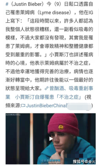 比伯这次上热搜的焦点,并不是发了新歌,或是又有什么新的事业动态,而是因为自曝自己身患“莱姆病”。
