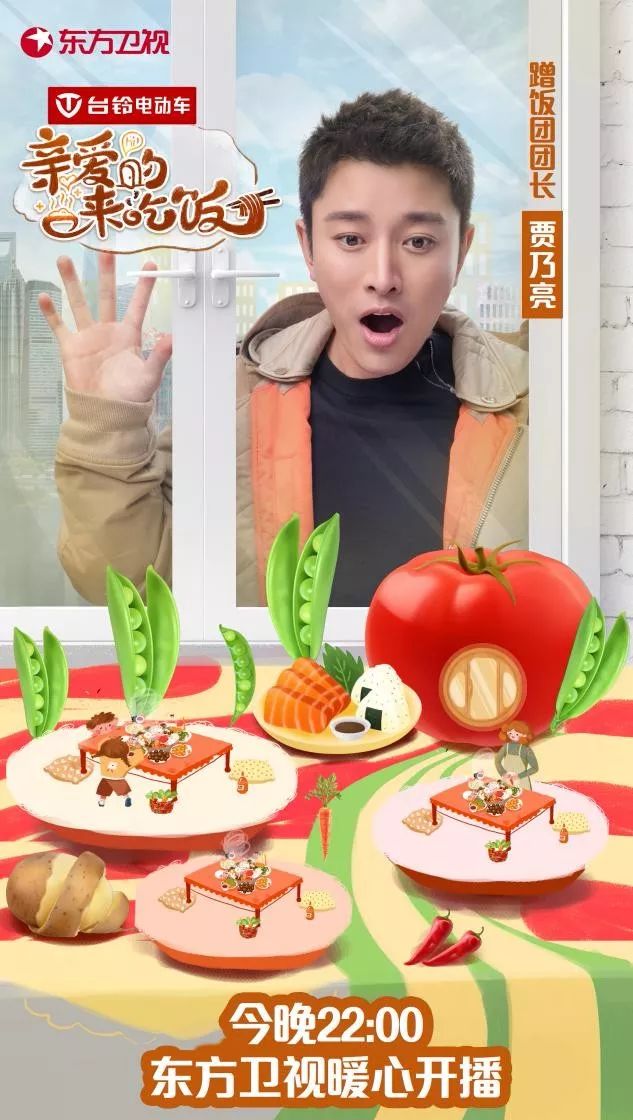 国内首档都市观察类美食纪实综艺台铃电动车《亲爱的,来吃饭》 今晚22:00正式首播!节目中,由贾乃亮、王祖蓝领衔的明星饭友将走近普通人,通过“刷街”和“扫楼”寻找到符合要求的家庭发出“蹭饭”请求,在一餐家常美食里体味温暖的百态真情。