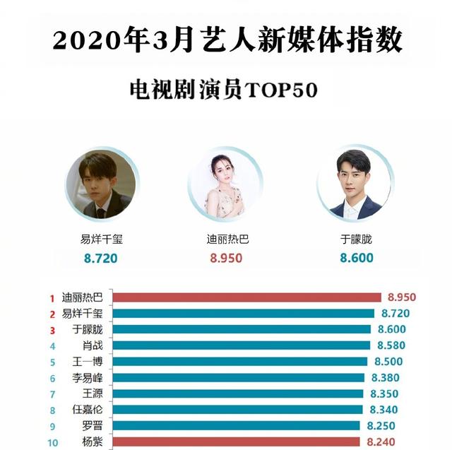 不知不觉2020年已经进入Q2了,而3月份的艺人新媒体指数也新鲜出炉了,这个新媒体指数是根据3月电视剧演员的受欢迎的热度来排榜单的(不含唱跳爱豆以及电影明星)。