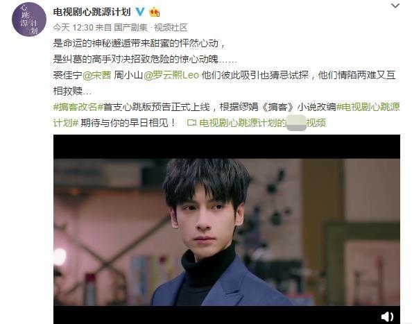 电视剧《心跳源计划》改编自作家缪娟的热门小说《掮客》,讲述了一位女博士在科研研发过程中惊心动魄的爱情故事。在片中由宋茜饰演机智果敢的女科学家裘佳宁,罗云熙饰演神秘的掮客周小山。