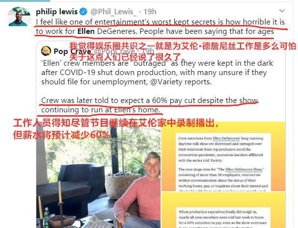 4月18号,据美国媒体报道,艾伦名下节目《艾伦秀》的员工对疫情期间的薪资以及团队缺乏沟通等问题十分不满,并为此感到愤怒。