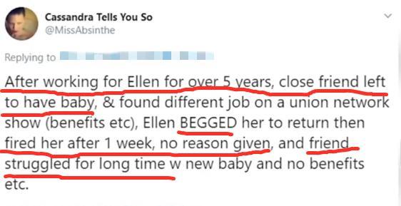 有网友爆料,自己有一个好友曾为艾伦工作5年,为了生孩子她曾跳槽但是艾伦请求她回来,结果1周后却又把她炒了,导致她在很长一段时间内生活困难。如果该爆料属实的话,艾伦在辞退这个跳槽员工一事上可真是花样百出。