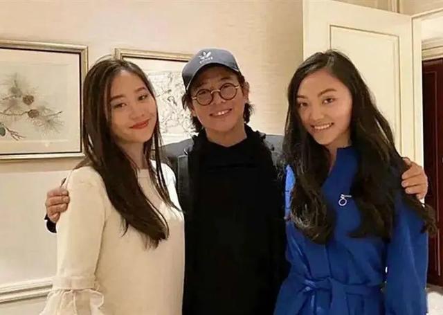 李连杰站在中间,两个女儿各站一边,他脸上洋溢慈爱与幸福: