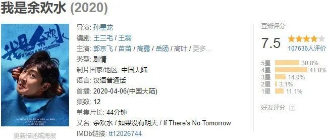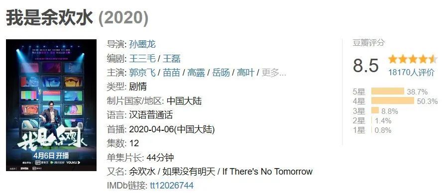 网上不少人说,《余欢水》得比《白夜追凶》分高,《余欢水》怎么着也得9分。