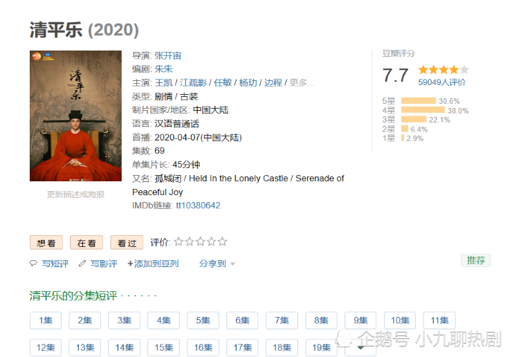 很大一部分人评价一部作品的好坏,不是看剧本,而是关心谁是主演?哪个公司拍的?谁导演的?《清平乐》就是这样,还没播出的时候网上就流传着一句话“正午出品,必属精品”。正午确实有很多好的作品,抱着这样的思想,没人关心剧本的好坏,就这样盲目的跟风追剧。所以《清平乐》刚开播,观众一股脑的涌进追剧的大潮。可是,看了几集以后发现,剧情拖拉的太严重,每一集都在吊观众的胃口。