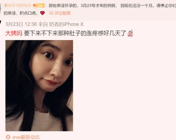 随后,有粉丝晒出张大奕在3月份曾经说过自己来例假的证据,力证张大奕没有怀孕。