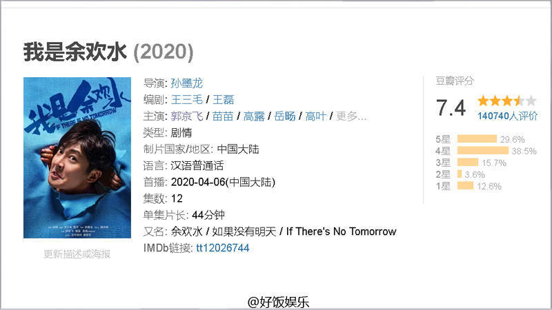 大家或许还记得,在《我是余欢水》播出次日,就凭着豆瓣开画8.5,成为2020年开年评分最高的国产剧(国产动画片除外),加之这部剧和2019年的爆款剧《都挺好》的编剧是同一拨人,都是王三毛、王磊这对父子档,且两部戏背后的出品方都是业内出了名的良心剧专业户“正午阳光”,于是很多剧评人及最多观众都认定《我是余欢水》将会是继《都挺好》之后,“正午阳光”团队的又一爆款剧。