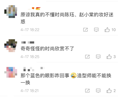 原本眼睛就比较小的陈珏这次也挑战了自己,没有化眼妆,不笑的她,看起来真的是老了10岁不止啊。
