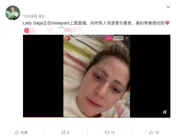而在众多歌手录播预热的同时,操办整个演唱会的Lady Gaga在自己社交主页上开始了直播,向全世界所有人传递爱与善良。