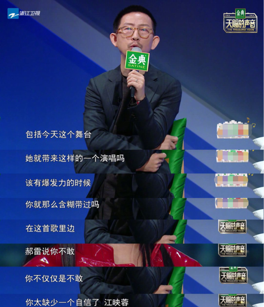 有趣的是这样一位毁誉参半的评审,在最新一期的《天赐的声音》中又把一位女嘉宾怼哭了,她就是曾经的超女冠军——江映蓉。