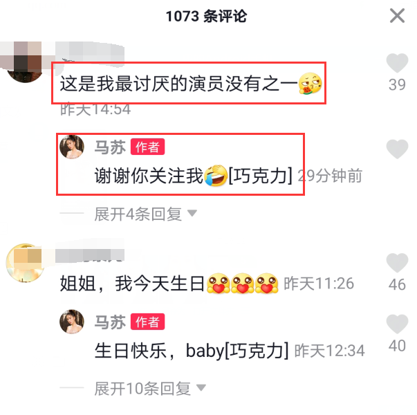 某网友毫不留情炮轰马苏:这是我最讨厌的演员没有之一!马苏看到这一条负评,没有删除拉黑网友,而是很淡定地回应对方:谢谢你关注我!