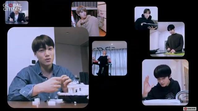画面中,他们每个人都在各自的家中,一边唱歌,一边做着其他事情,显得非常平易近人,但充满着场景感。有人在写作业,有人在厨房做饭,还有人在家里用器材锻炼身体......但这丝毫不影响7位大男孩完美的合唱。