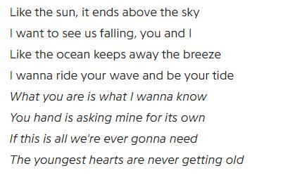 果不其然,这首歌词传达的也是满满的正能量!虽然整首歌写的更像是情歌,但是主题非常积极向上:我们永远需要的,是那颗不会变老的心呀!而面对疫情,我们不也是同样需要一颗不会害怕的心吗!