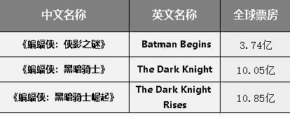 尽管诺兰的《蝙蝠侠》有两部破了10亿美元,但因为第一部的票房太低,所以拉低了整体成绩,以至于最后惜败小蜘蛛。