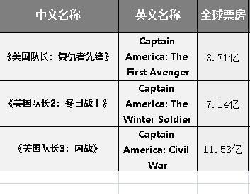然后看看美国队长,三部曲成绩分别是3.71亿、7.14亿跟11.53亿,合计总票房成绩为22.83亿美元,平均到三部的话是7.46亿美元。
