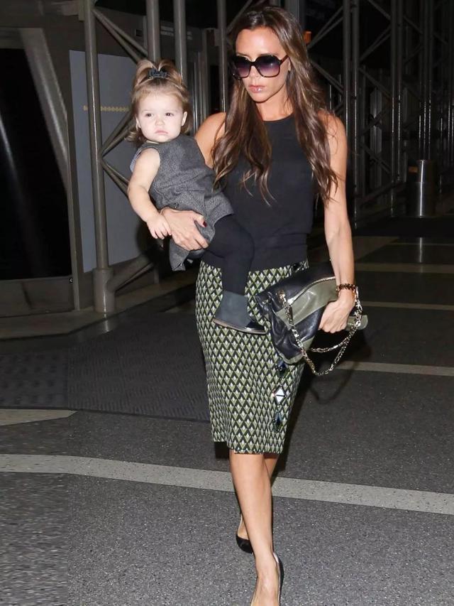 看看她穿着高跟鞋单手抱娃的姿势,特帅。