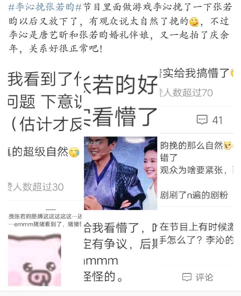 最新一期《王牌对王牌》节目里面做游戏李沁挽了一下张若昀以后又放下了,有观众说挽的太自然了。随后就被过分解读,然后这个“黑热搜”从半夜开始挂了