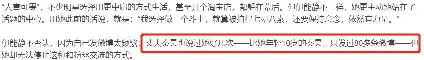 当时她还以自己频繁更新的社交媒体为傲,就算老公秦昊不认同,她也依旧很坚持。