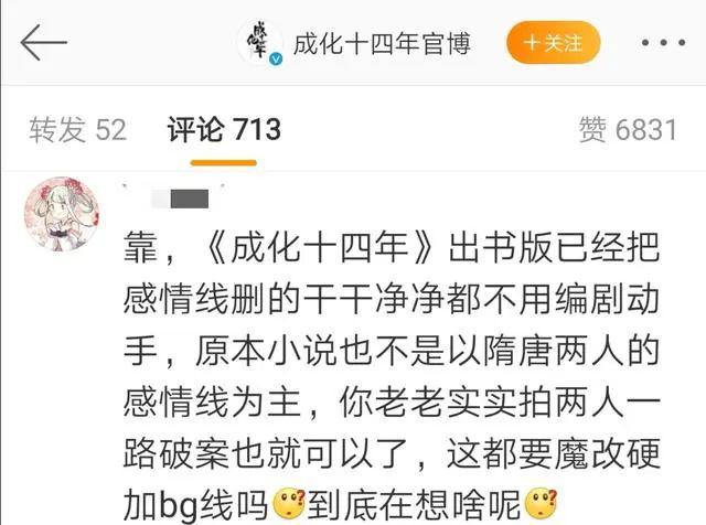 既然官方无情那就不能怪原著粉无意了,很快在《成化》的官博下面都是在质问为何要加女主,孟子义的教训还不知道吗?