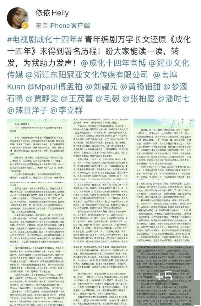 正好今天青年编剧发布微博控诉《成化十四年》剧方。