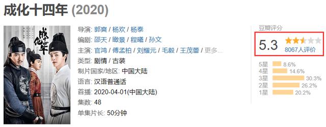 与《清平乐》有同样命运的还有一部《成化十四年》,两部剧作为这段时间的同类型古装戏,这部剧扑得更惨烈!
