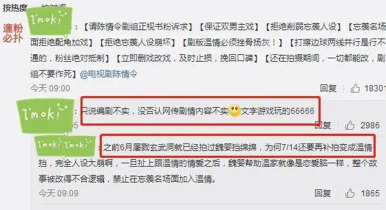 但剧粉丝并不为这个声明买单,粉丝也开始提出很多诉求:保证双男主戏,拒绝削弱忘羡人设,剧版温情必须挫骨扬灰!这样的评论几乎已经刷爆了《陈情令》的评论区!