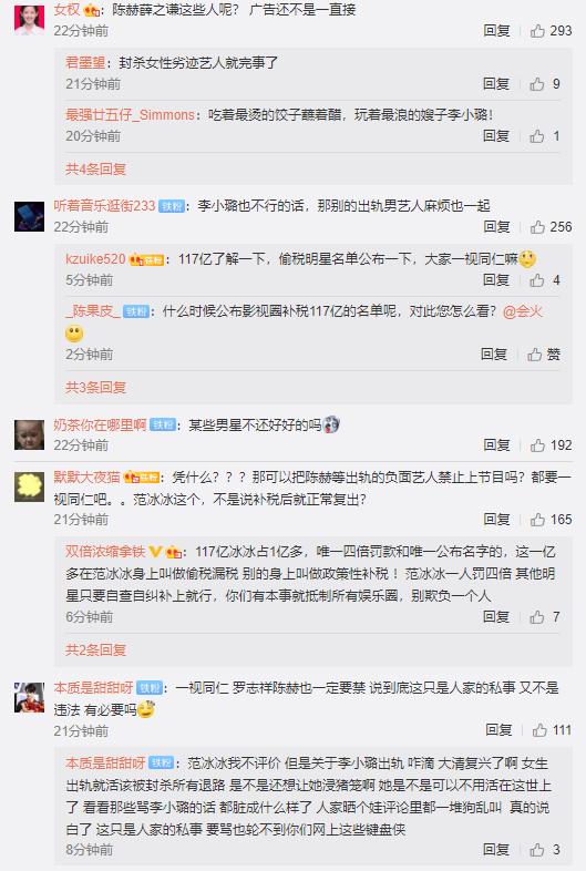有人将文中的"劣迹艺人"精确到"劣迹女艺人",有人认为应该一视同仁,像陈赫和薛之谦,拍综艺接广告忙得不亦乐乎。